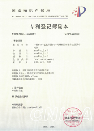 公司擁有一支高素質(zhì)科研隊伍,具備專業(yè)而高效的研發(fā)能力。近幾年,共取得科技成果30項(xiàng),其中9項(xiàng)獲國家發(fā)明專利,2項(xiàng)獲湖北省科技進(jìn)步獎,開發(fā)新產(chǎn)品8個,綠色合成、手性合成和催化等技術(shù)引領(lǐng)行業(yè)發(fā)展。主要銷往歐美、日本、韓國、中東、印度等40多個國家和地區(qū)。